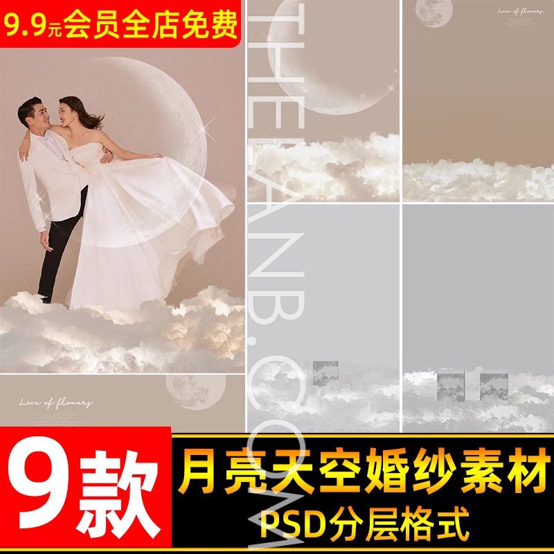 [VShare PSD] 09 Mẫu Background Trăng Siêu To Ghép Ảnh Cưới Studio Phong Cách Hàn Quốc (PSD) (Update 2025)