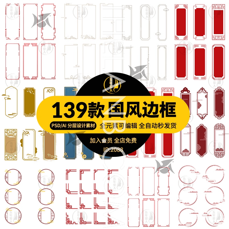 [VShare PSD/AI] 39 Mẫu Khung Viền Phong Cách Cổ Điển Trung Quốc Sắc Nét