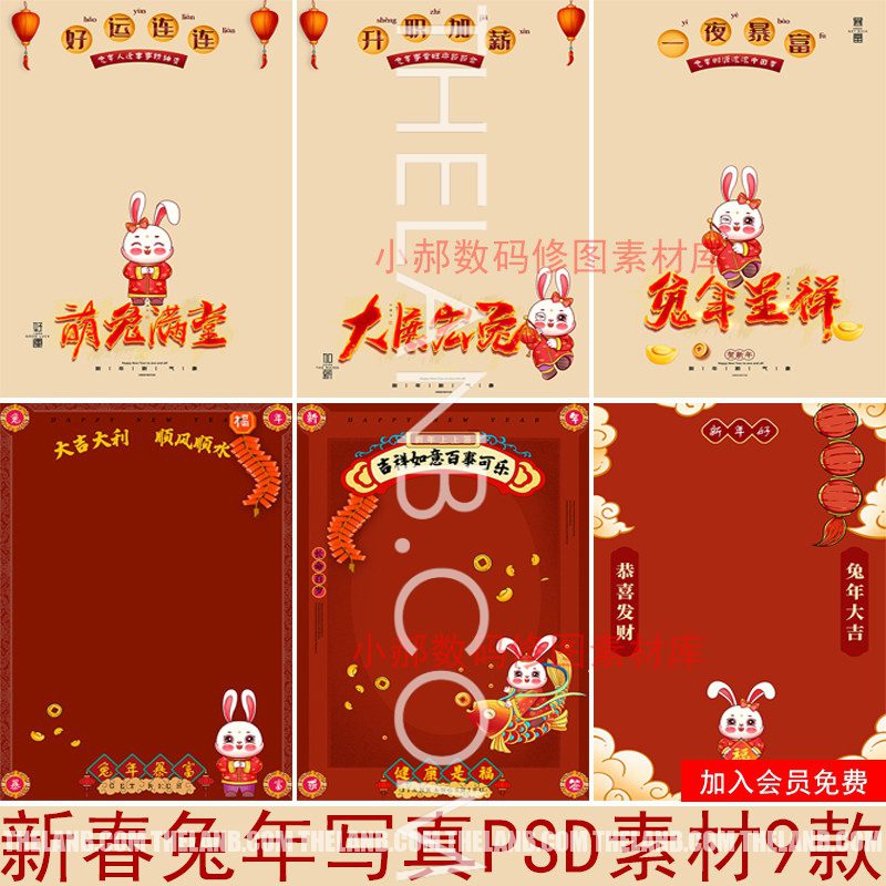 [VShare PSD] 06 Mẫu Bìa Chủ Đề Tết 2023 – Tết Con Thỏ Trung Quốc
