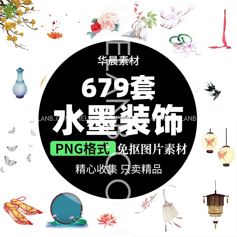 [VShare PNG/PSD] 120 Vật Liệu Trang Trí Ảnh Cổ Trang Vẽ Tay Tỉ Mỉ (Lồng Đèn, Hoa Đào, Chim, Bướm….)