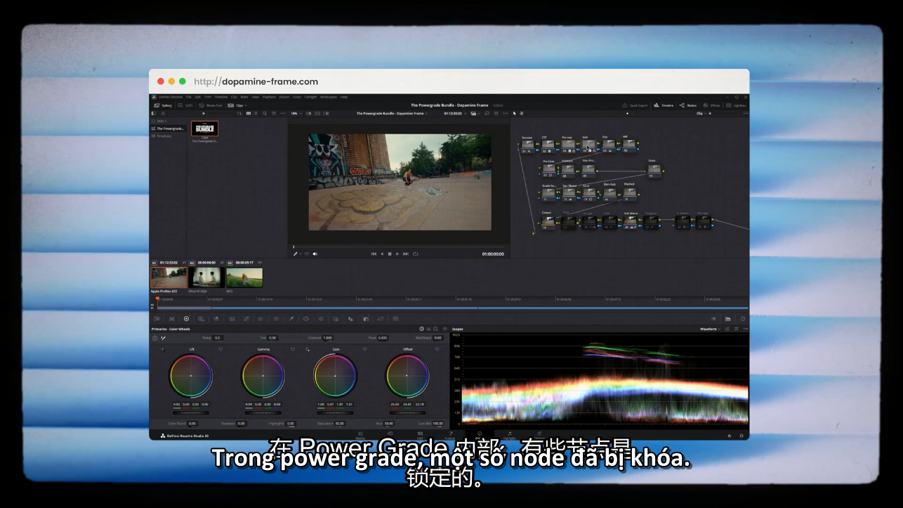 Khác với LUT thông thường, bộ Powergrade này cho phép chỉnh sửa toàn bộ cấu trúc màu, giúp bạn vừa giữ được không khí film, vừa kiểm soát chính xác màu da, highlight và shadow.