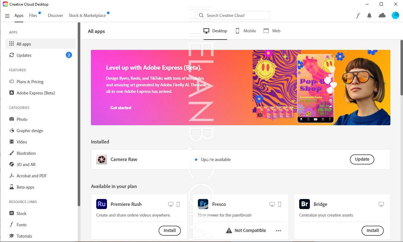 LƯU Ý Bản cập nhật photoshop 25.0 phải được cập nhật từ trong adobe creative cloud, sau đó không khởi động photoshop lên và làm theo hướng dẫn sau: